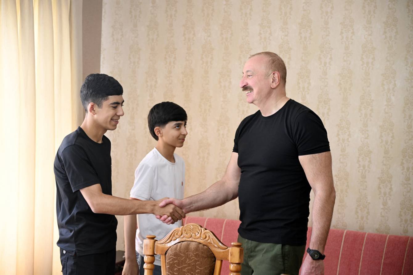 Dövlətimizin başçısı əvvəlcə kəndə köçən Məhəmməd Fərəcovun evinə baş çəkib.