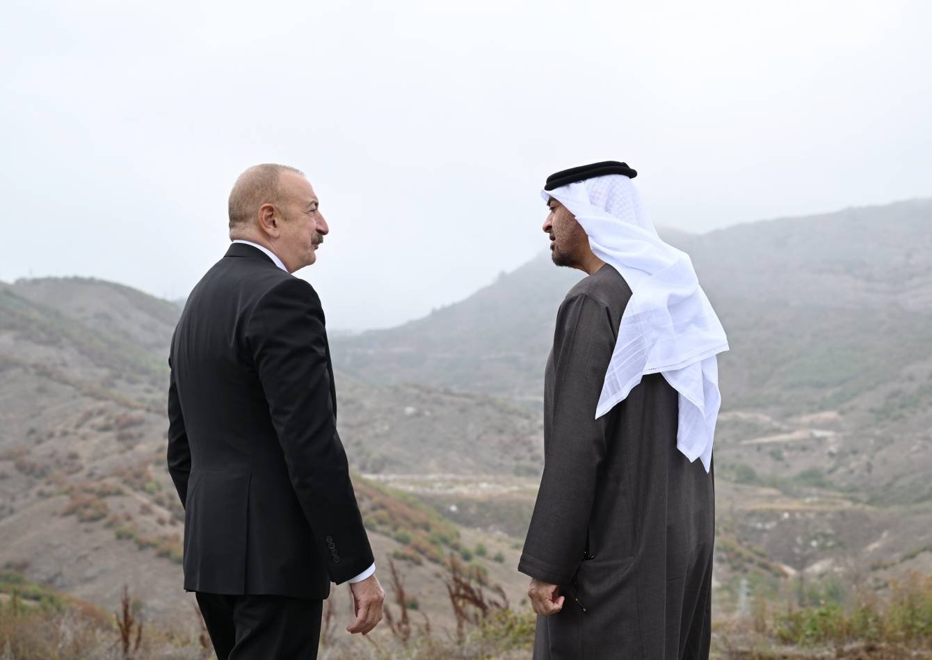 Azərbaycan və Birləşmiş Ərəb Əmirliklərinin Prezidentləri Şuşa rayonunun Daşaltı kəndinin fonunda şəkil çəkdiriblər