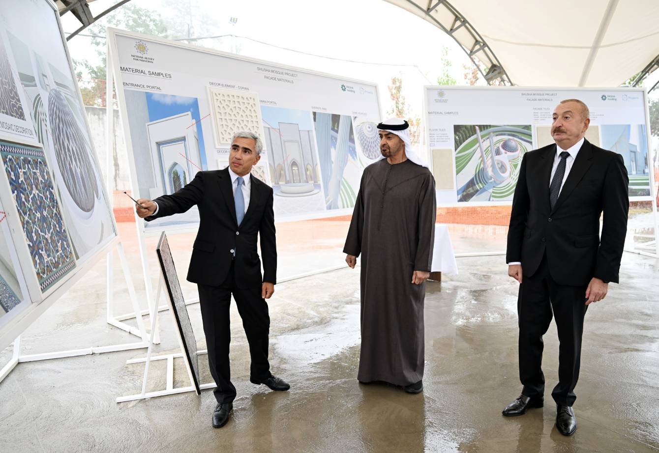 Azərbaycan Respublikasının Prezidenti İlham Əliyev və Birləşmiş Ərəb Əmirliklərinin Prezidenti Şeyx Məhəmməd bin Zayed Al Nəhyan sentyabrın 16-da Yeni Şuşa məscidində tikinti işlərinin gedişi ilə tanış olublar.